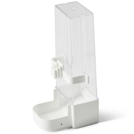 Plastové krmítko so zásobníkom vhodné pre malé a stredné vtáctvo. Pomocou plastového držiaka sa ľahko prichytí na klietku. Zásobník mimo klietku uľahčuje doplňovanie a ľahko sa neznečistí.