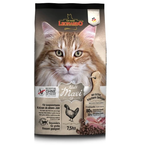 Kompletné bezobilné krmivo Leonardo pre dospelé mačky veľkých plemien. Pomáha v boji proti zubnému povlaku, udržuje stabilnú pH moču a zabraňuje vzniku trichoezoárů.