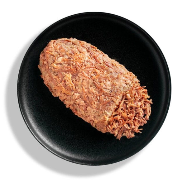 čerstvé kačacie mäso, srdce, pečeň, žalúdok (34,5 %), mäsový vývar (34,3 %), čerstvé trhané hovädzie mäso (14 %), hovädzie pľúca (7,5 %), sušené vaječné škrupiny (0,5 %), minerály, lososový olej (0,2 %).