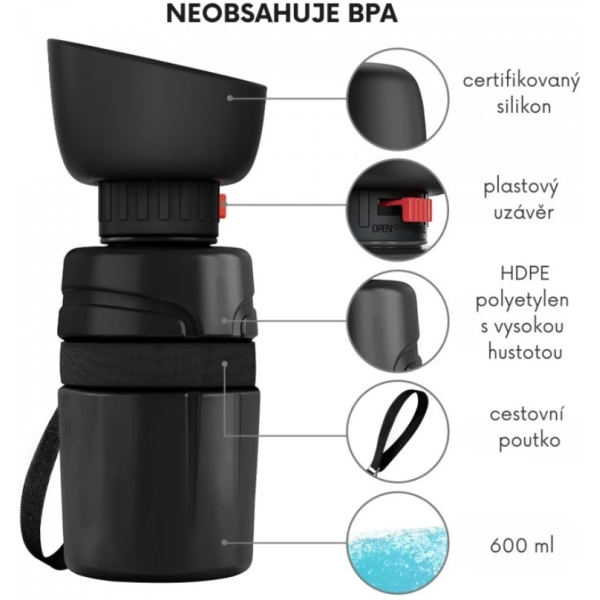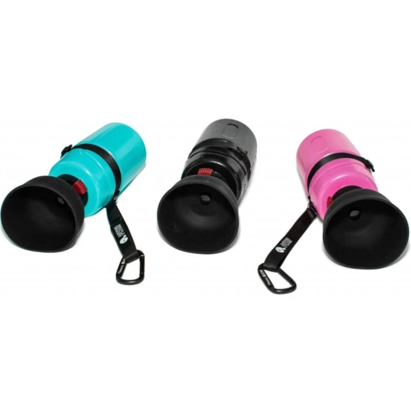 Neodhadli ste správne množstvo vody? Nevadí, opätovným otvorením tesniaceho uzáveru sa voda vráti späť do fľaše a vy sa vyhnete zbytočnému plytvaniu a predčasnému vyčerpaniu zásob. Cestovnú fľašu Lesotc si môžete vziať kamkoľvek so sebou. Vďaka karabínke môžete fľašu ľahko pripnúť na batoh alebo opasok a cestovať s vedomím, že váš štvornohý partner bude mať vždy dostatok pitia.