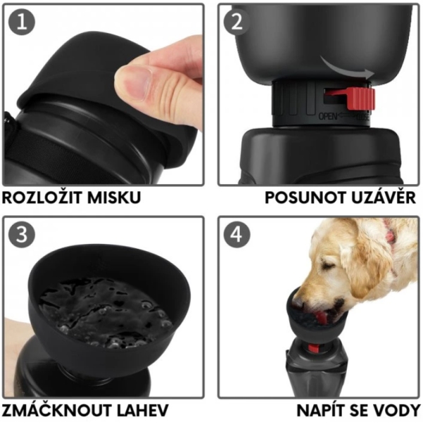 Už sa nemusíte obávať zabudnutej misky, plnej batožiny alebo nešikovnej manipulácie. Cestovná fľaša a miska Lesotc v jednom je pohodlným riešením pre psa aj majiteľa. Keď je čas na hydratáciu, stačí vytiahnuť misku na fľaši smerom nahor, jednoducho posunúť tesniaci uzáver, stlačiť fľašu a miska sa naplní. Posuňte uzáver späť, aby ste zabránili spätnému toku vody späť do fľaše, a vytúžené osvieženie sa môže začať.