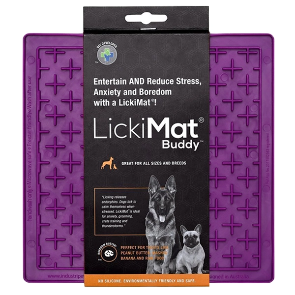 LickiMat Buddy je jedinečná lízacia podložka pre malé a stredné psy. Ideálna na zvýšenie chuti do jedla, odstránenie stresu, spomalenie príjmu potravy, ale aj na hravejší a zábavnejší spôsob podávania mokrého krmiva a maškŕt. Odporúčané veterinármi a chovateľmi po celom svete.