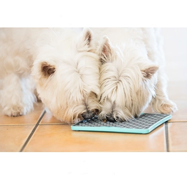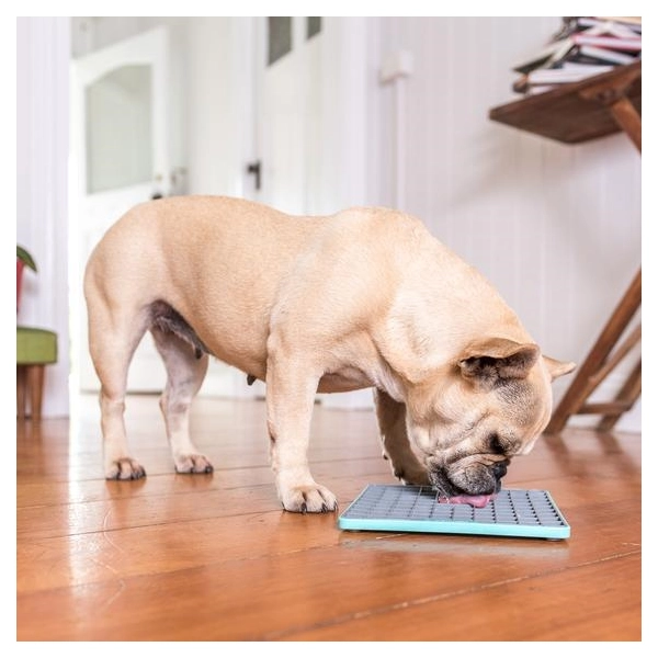 LickiMat je pružná podložka, ktorú možno použiť namiesto misky na všetky druhy krmiva i maškŕt. Častejšie je, ale vyhľadávaná ako produkt, ktorý má maznáčikovi spestriť kŕmenie, spomaliť jeho príjem a dopriať iný a zábavnejší pôžiťok z kŕmenia. Podložku môžete uchovávať v chladničke a dokonca ju nechať spoločne s krmivom zamraziť. Po použití ju stačí umyť ako bežnú misku, znesie aj umývanie v umývačke riadu.