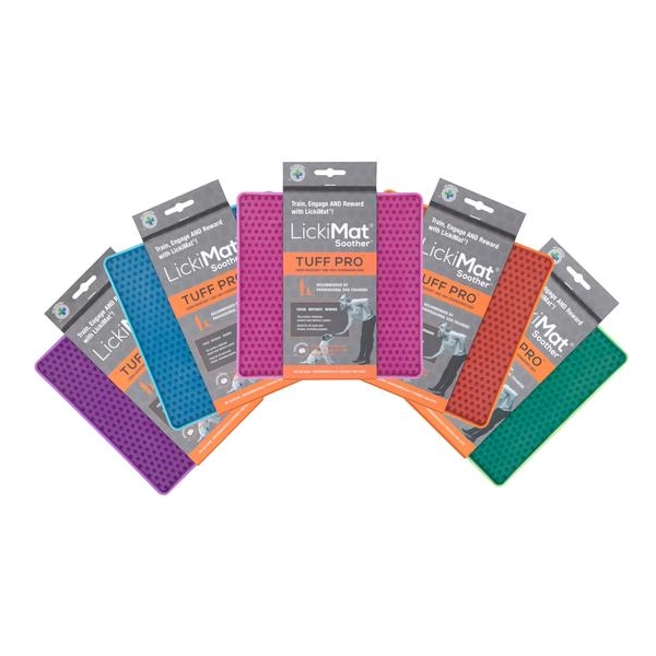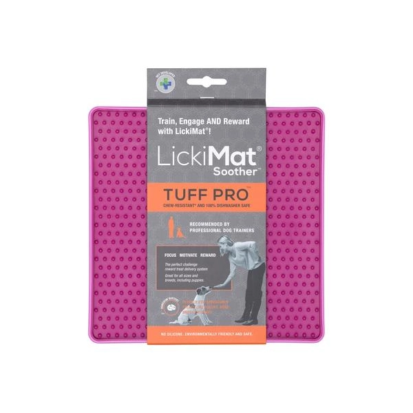 Lízacie podložky sú skvelým doplnkom, ktorý si váš maznáčik naozaj obľúbi. Typ Tuff Pre Soother je opatrená hrubším mriežkovým vzorom, je tak ideálny pre mokrá krmivá, omáčky, mäsa či mazľavé maškrty, uspokojí tiež väčšie plemená psov. Má hneď niekoľko výhod, medzi tie hlavné patrí spomalenie priebehu kŕmenia, zatraktívnenie príjmu krmiva a maškŕt, čistenie jazyka, zahnanie nudy a stresu a v neposlednom rade tiež príjemná zábava. LickiMat je zabijak nudy a všednosti. Tuff Pre Soother má oproti bežným podložkám Lickimat zosilnenú a tuhšiu konštrukcii z kombinácie gumy a plastu. Je teda vhodnejšia pre šteňatá s ostrými zúbkami alebo psy, u ktorých hrozí, že budú chcieť do podložky hrýzť.