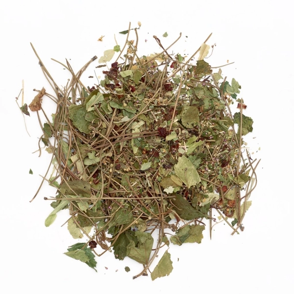 Plod šípku, ihličie borovice, kvet vresu, kvet a listy hlohu, vňať dobromyseľu, kvet lipy, list čučoriedky, list brezy.