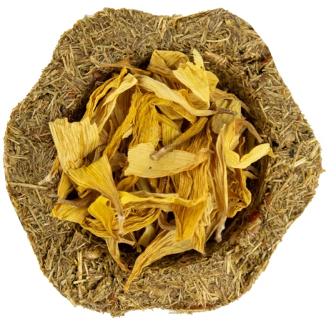 Limara miska na kŕmenie so slnečnicovými lístkami je bezobilná pochúťka pre bylinožravé hlodavce a králiky. Miska je vyrobená z prírodných materiálov, ktoré zaručujú vysoký obsah vlákniny.