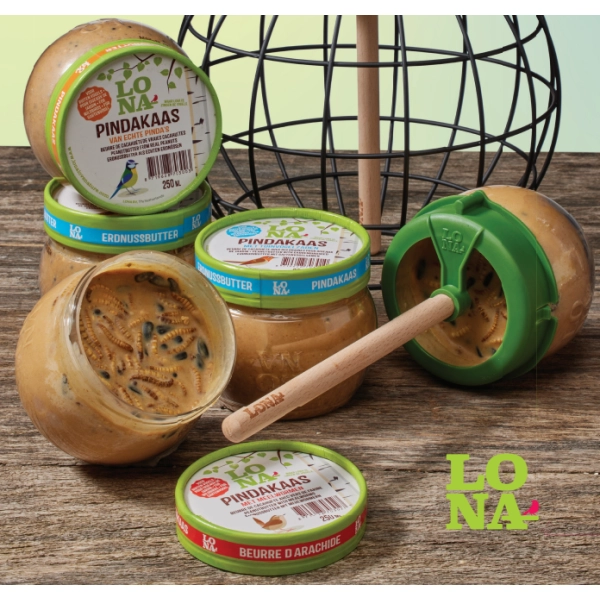 Obľúbená pochúťka, na ktorej si pochutná každý vták. Arašidové maslo holandskej značky Lona je vyrobené z pravých arašidov a slúži ako potrava pre vonkajšie vtáky nielen v zimných mesiacoch. Chutné, výživné a voňavé na kilometre ďaleko. Bohaté na sacharidy a dôležité bielkoviny pre stavbu tela, s múčnymi červami pre ešte väčší pôžitok.