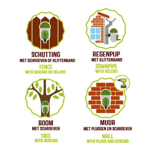 Nástenné záhradné kŕmidlo pre vonkajšie vtáctvo od holandskej značky Lona ponúka jednoduchý spôsob kŕmenia voľne žijúceho vtáctva, najmä v zime. Krmítko pre vtáky sa ľahko zloží za pár minút bez použitia náradia a pomocou suchého zipsu sa pripevní okolo stromu, plota, zvodov alebo pergoly. Hneď ako okrídlený spevavec zavíta, môže sa bezpečne a potichu nakŕmiť. Kŕmidlo sa dokonale hodí k arašidovému maslu Lona - vrchnák vymeňte so zeleným nástavcom s bidielkom a je hotovo.