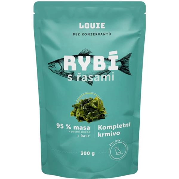 Praktické balenie poctivého krmiva pre psov Louie. Vrecúško s krmivom pre psov Louie s rybami a morskými riasami je tu pre psov každého veku a plemena, od šteniat až po seniorov. Kompletné receptúry krmiva Louie dokonale napodobňujú čerstvo ulovenú korisť vo voľnej prírode. 95 % mletého rybieho mäsa dopĺňa 5 % zmes rastlinných látok, vitamínov a minerálov, ktorá dokonale napodobňuje bylinožravca, ktorého by psík vo voľnej prírode neminul.