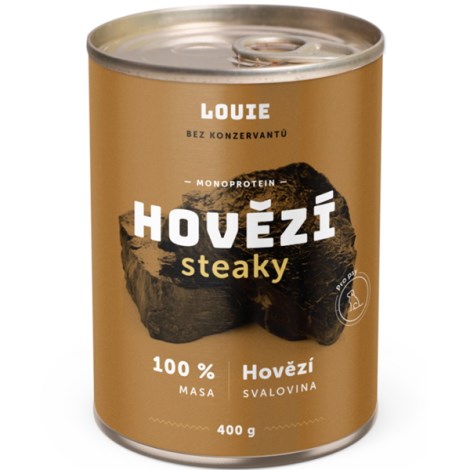 Doprajte svojmu psovi nezabudnuteľnú a prirodzenú žranicu, ktorú si vyžaduje jeho bruško. Šťavnatá konzerva pre psov Louie hovädzie steaky je vhodná pre psy všetkých plemien bez ohľadu na vek. Receptúra Louie dokonale napodobňuje čerstvo ulovenú korisť vo voľnej prírode. 100 % čisté mäso v podobe celých kúskov hovädzej svaloviny poteší vášho psa v každom ohľade a poskytne chutnú večeru v každej domácnosti.