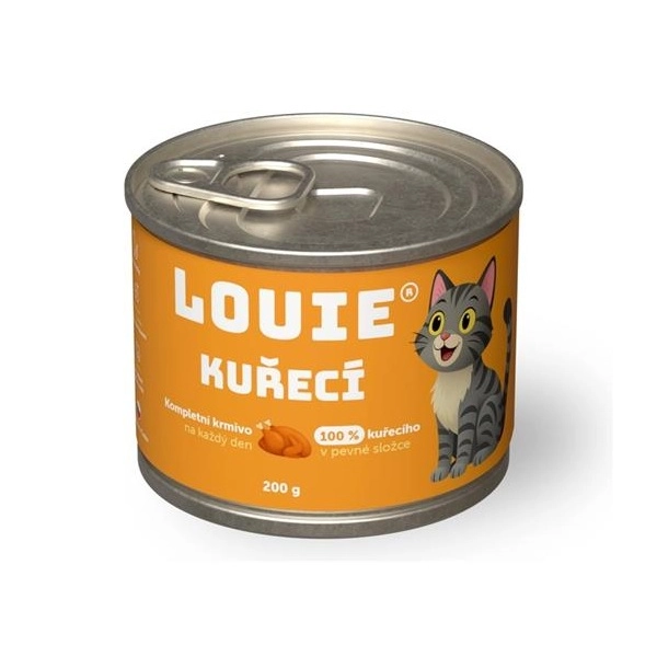 Kompletné krmivo pre mačky všetkých vekových kategórií a plemien. Konzerva pre mačky Louie Chicken s prebiotikami obsahuje 100 % pevného mäsa, ktoré mačku prenesie do divočiny s blaženým pocitom práve ulovenej koristi. Úplne prírodné, bez dochucovadiel a farbív.