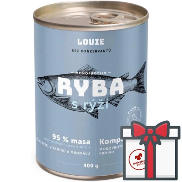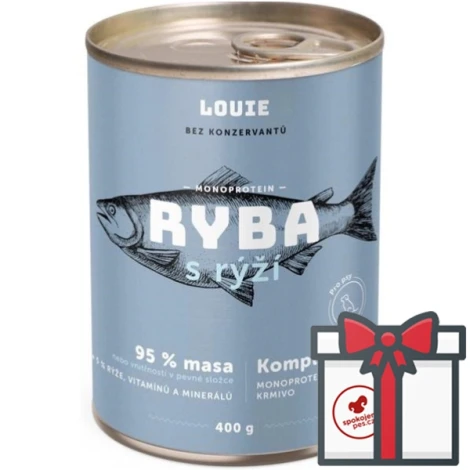 Doprajte svojmu psovi nezabudnuteľnú a prirodzenú žranicu, po ktorej jeho bruško túži. Šťavnatá ryba a ryža v konzerve Louie je vhodná pre psy všetkých plemien bez ohľadu na vek. Kompletné receptúry krmiva Louie dokonale napodobňujú čerstvo ulovenú korisť vo voľnej prírode. 95 % mleté rybie mäso je zdokonalené zmesou rastlinných zložiek, ktoré nahrádzajú obsah žalúdka uloveného bylinožravca, pridanými vitamínmi a minerálmi spolu s mäkčenými rybími kosťami, ktoré sú prirodzeným zdrojom vápnika a fosforu v prirodzenom pomere.
