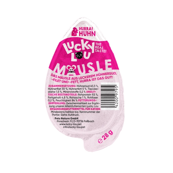 Doprajte svojej mačke nevšedný chuťový zážitok s Lucky Lou Mäusle v tvare malej rozkošnej myšky. Originálny tvar a dokonalá chuť kuracieho filé robia z tejto pochúťky vynikajúcu desiatu. Na poctivých surovinách bez zbytočných prísad si môžu pochutnať aj mačky s citlivým bruškom. Vynikajúci darček, ktorý zaručene pobaví vašich mačacích priateľov a ich majiteľov.