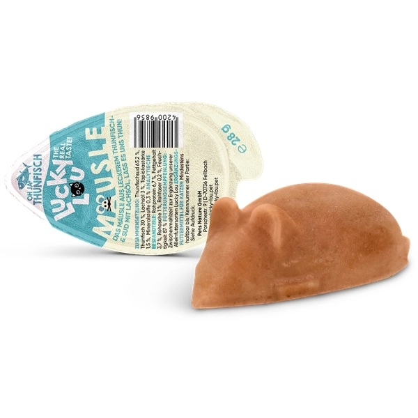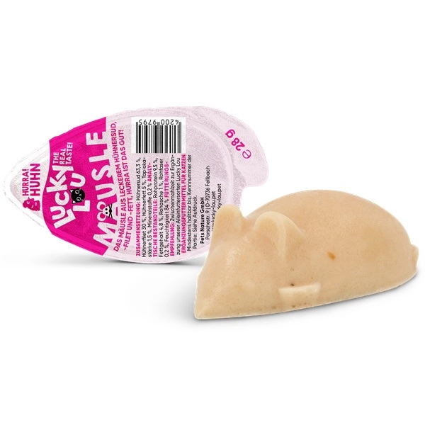 Maškrty Lucky Lou Mäusle sú šťavnaté a ľahko stráviteľné pochúťky bez obilnín, ktoré sa ľahko porciujú a hodia sa aj pre citlivé bruška. Lucky Lou Mäusle Drink-Snack sú syrové maškrty tekutej konzistencie, ktoré sa ľahko podávajú a svojou syrovou príchuťou zlákajú aj vyberavé mačky.