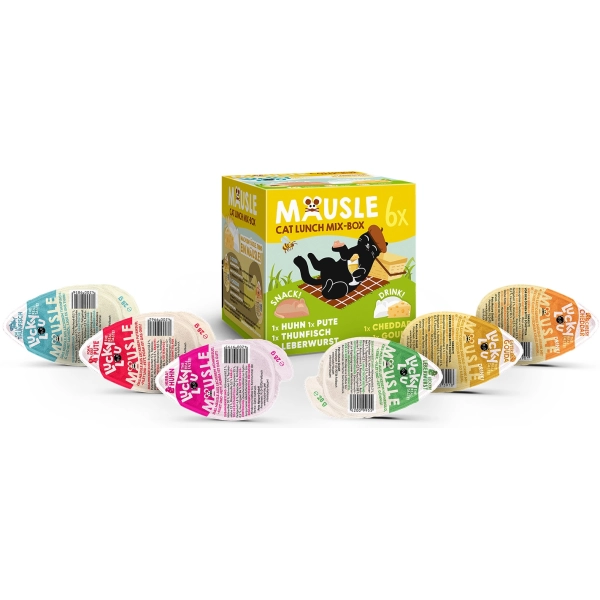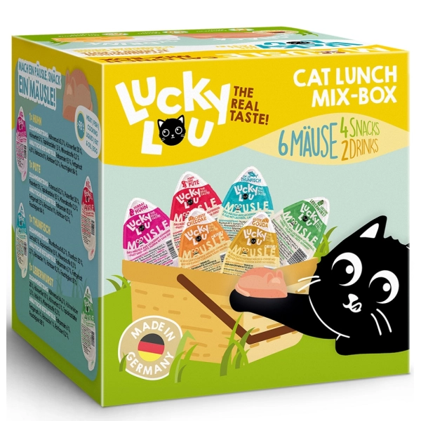 Multipack všetkých obľúbených maškrty pre mačky Lucky Lou Mäusle. Jemné paštéty v tvare myšky ako lahodná desiata, mňamózne drinky z mlieka ako podpora hydratácie, schutnenie granuliek alebo zábava do lízacej podložky. Pochúťky, ktoré zaujmú nielen svojou bezchybnou chuťou, ale aj nevšedným vzhľadom. Štýlový darček pre mačky a ich majiteľov.