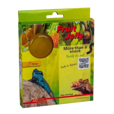 Chutné občerstvenie a kvalitný doplnok v jednom! Lucky Reptile Fruit Jelly Mango je ovocné želé plné prírodných zložiek, vitamínov a minerálov. Táto malá farebná pochúťka s pravou ovocnou šťavou, medom a včelím peľom poteší plazy, cicavce, vtáky a chrobáky.