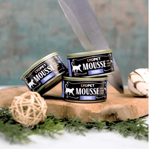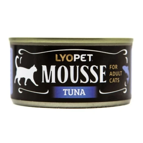 Tuňákový mousse pre mačky všetkých vekových kategórií Lyopet Mousse Cat Tuna. Jemne našľahané kúsky mäsa z kvalitného tuniaka doprajú mačke gurmánsky zážitok, ktorý baví, chutí a zároveň prospieva jej zdraviu. Výživné krmivo so 100% prírodným zložením je určené na každodenné kŕmenie aj ako odmena pri výnimočných chvíľach.