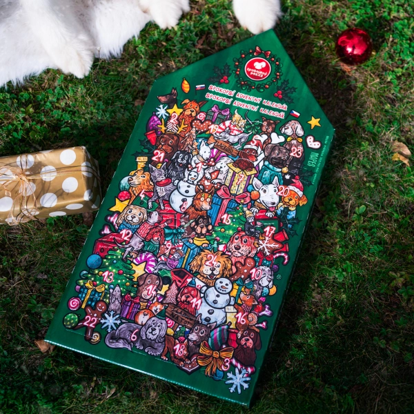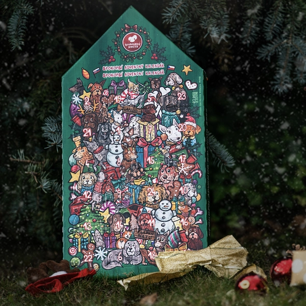 Najobľúbenejší a najchutnejší adventný kalendár pre psíky. Česká rodinná firma Mapes sa zaoberá prírodnými pochúťkami z mäsa a vnútorností, ktoré psíky milujú. A práve tieto pochúťky sú ukryté pod jednotlivými okienkami kalendára. Tento rok sme pre vás zabalili kalendár do jedinečného vianočného dizajnu Spokojného psa!