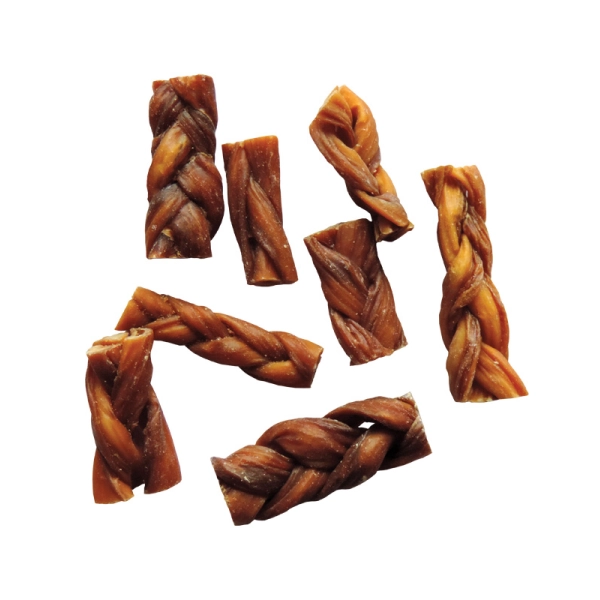 Najobľúbenejšie sušená pochúťka Mapes - Copánky upravené tak, aby sa dali použiť ako odmena na prechádzke, na cvičisku alebo len tak pre radosť. Vrkôčiky sú spletené sušená črievka rezané na malé kúsky do 4 cm.