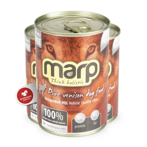 Holistické konzervované krmivo so zverinou od českej značky Marp. Obsahuje iba mäso zo zveriny, zaliate čistým vývarom. Konzerva je vďaka obsahu jedinej bielkoviny vhodná aj pre hypoalergénnu diétu. Hrubá paštéta s väčšími kúskami, ktorá neobsahuje obilniny ani konzervanty. Výhodné balenie 6x 400 g.