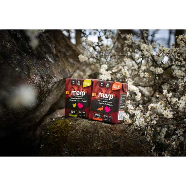 Holistické krmivo od obľúbenej značky Marp. Receptúra s morčacím a kuracím mäsom v kombinácii s mrkvou, zemiakmi a brusnicami zaručene poteší gurmánske chúťky vášho psa. Paštéta obsahuje až 97 % živočíšnych bielkovín. Vybrané vitamíny a minerály podporujú celkové zdravie organizmu. Veľkou výhodou tetrapaku je jeho praktickosť a ekologický aspekt. Obal je 100 % recyklovateľný a vďaka svojej nízkej hmotnosti sa výborne hodí na cesty. Receptúra je úplne bez obilnín, bez lepku a bez umelých konzervačných látok. Vhodná pre šteňatá, dospelých a starších psov, pre športovcov aj gaučových miláčikov.