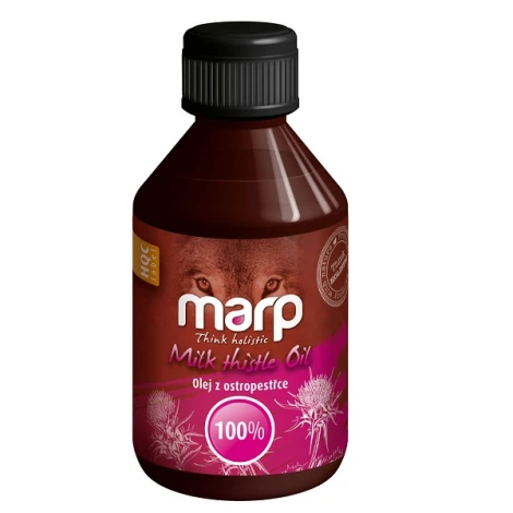 100 % prírodný za studena lisovaný pestrecový olej olej Marp Holistic. Je výborným zdrojom esenciálnych mastných kyselín. Podávanie oleja má veľmi pozitívne účinky na organizmus, je silným antioxidantom. Olej tiež príjemne ochutí podávané krmivo.