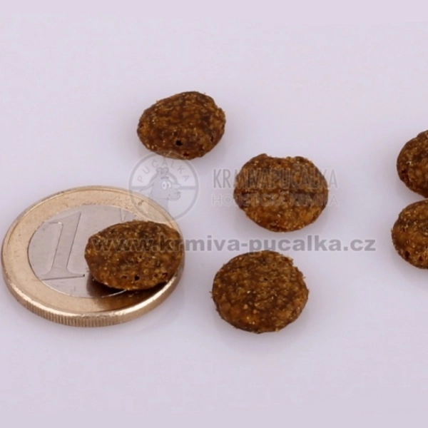 Hrubá bielkovina 19 %, hrubé tuky 10 %, hrubá vláknina 3,5 %, hrubý popol 7 %, vlhkosť 8 %, vápnik 1,2 %, fosfor 0,9 %, omega 3 0,2 %, omega 6 1,7 %.