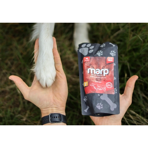 Hovädzí vývar Marp Holistic je vhodný pre psy a mačky všetkých vekových kategórií, od hravého šteňaťa až po múdru mačku. Vrecúško s vývarom skvele podporuje hydratáciu domáceho maznáčika a chutnosť granúl. Ak máte doma príliš vyberavého psa alebo mačku, prírodný vývar Marp je pre vás tou správnou voľbou. Hovädzí vývar tiež pomôže udržať zdravé kĺby a kosti vďaka obsahu prírodného kolagénu. Vrecúško je tiež ideálnym spôsobom hydratácie vášho psieho športovca pred a po cvičení, čo mu pomôže k efektívnejšej práci a následnej regenerácii.