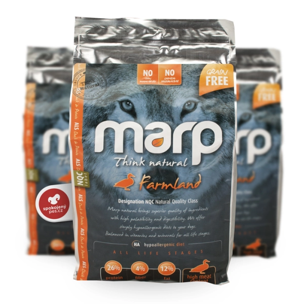 Marp Natural Farmland Duck obsahuje mäso zo zvierat z voľných chovov. Zloženie je prírodné a granule sú vhodné pre dospelé psy všetkých plemien. V krmive sa nachádza len jedna bielkovina pre správnu výživu psov. Zdravá a lesklá srsť je podporená vyváženým pomerom omega 3 a 6 mastných kyselín, prídavkom zinku, biotínu a ľanového semienka. Receptúra bez chemických konzervantov, farbív a hormónov. Granule neobsahujú soľ.