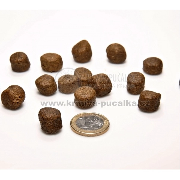 Sušená kačka, zemiaky, hrášok, kačací tuk, repné odrezky, pivovarské kvasnice, ľanové semienko, minerály, vitamíny.