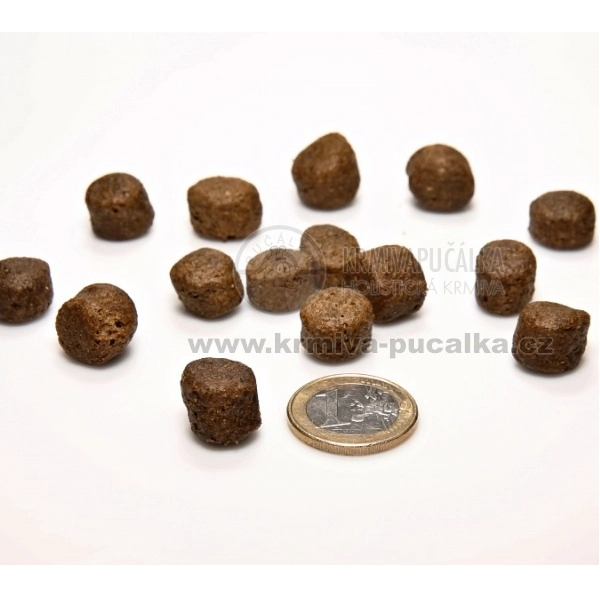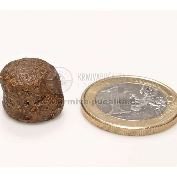Hrubá bielkovina 26 %, hrubé tuky 11 %, hrubá vláknina 4 %, popolovina 8 %, vlhkosť 8 %, vápnik 1,9 %, fosfor 1,2 %, omega 3 0,5 %, omega 6 2,6 %.