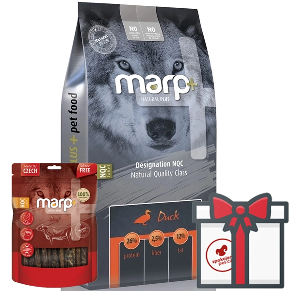 Suché krmivo Marp Natural Plus s kačacinou je vhodné pre dospelé psy všetkých plemien a šteňatá veľkých plemien. Jeho vylepšená receptúra je obohatená o kĺbovú výživu, ľanové semienko, sušenú čakanku, ktorá má pozitívny vplyv na trávenie, a sladké zemiaky, ktoré sú vynikajúcim a ľahko stráviteľným zdrojom sacharidov. Krmivo je monobielkovinové a neobsahuje žiadne kuracie bielkoviny. Kurací tuk bol v receptúre nahradený hovädzím tukom. Rad krmív Natural Plus sa môže pochváliť kvalitnými surovinami pochádzajúcimi od miestnych dodávateľov a jedinečnou receptúrou.