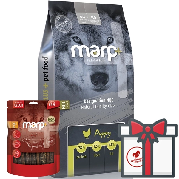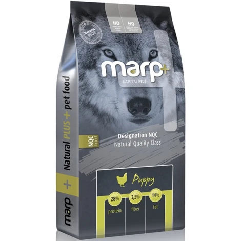 Špeciálna receptúra krmiva Marp Natural Plus Puppy je vhodná pre šteňatá všetkých plemien. Krmivo má veľmi jednoduché zloženie na báze sušeného kuracieho mäsa a kuracieho tuku. Okrem toho má ideálny pomer vápnika a fosforu, a preto je vhodné aj pre šteňatá veľkých plemien. V zložení nájdete aj ľanové semienko, ktoré má veľmi priaznivý vplyv na srsť, a sušenú čakanku, ktorá má pozitívny vplyv na trávenie. Rada Natural Plus sa môže pochváliť kvalitnými surovinami od miestnych dodávateľov a jedinečným zložením.