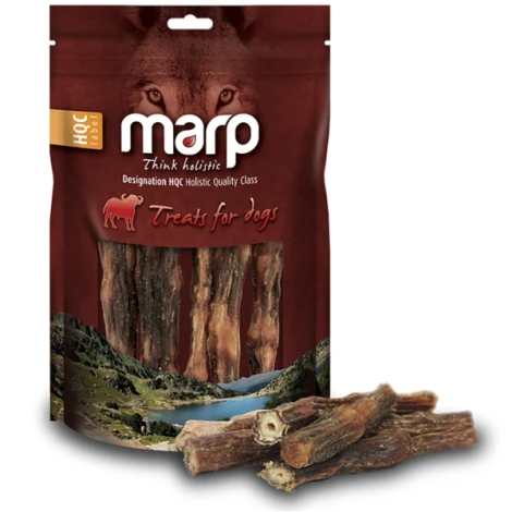 Holistické, veľmi chutné a 100 % prírodné maškrty Marp. Buffalo Tail sú sušené byvolie chvosty. Maškrty sú to tvrdé, šťavnaté a vyžadujú dôkladné a dlhé žuvanie. Znižujú zápach z papule a tvorbu zubného kameňa. Suroviny sú výhradne potravinárskej kvality. Vyrobené z voľne pasúcich sa byvolov - nižší obsah tuku a cholesterolu ako pri hovädzích maškrtách.
