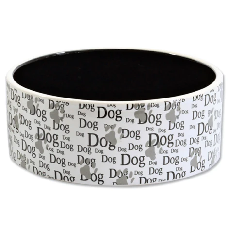 Krásna keramická miska s sivočiernu glazúrou a potlačou pre psov. Priemer v spodnej časti 20,5 cm, výška 7,5 cm.