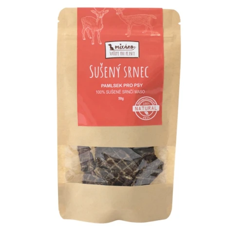 Mixáno pochúťky zo sušeného jeleňa sú určené pre všetky psy staršie ako 6 mesiacov. Pochúťka je prírodná a obsahuje iba 100 % jelenie mäso. Zložky neobsahujú pridané éčka ani chémiu. Maškrty sú skvelým zdrojom bielkovín.