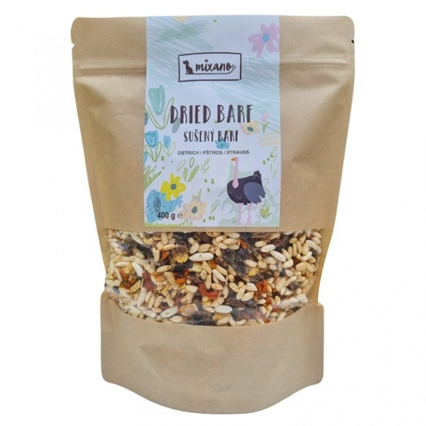 Sušené BARF s pštrosom z Mixána - prírodná pochúťka plná zdravia! Doprajte svojmu chlpatému priateľovi skutočný gurmánsky zážitok!