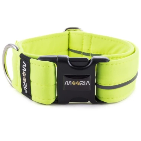 Obojky Mooria sú vyrobené z funkčnej, vode odolnej textílie. Základ tvorí pevný popruh, ktorý je obšitý softshellom. Majú tak rovnakú funkčnosť a pevnosť ako veľmi rozšírené nylonové výrobky, navyše však ponúkajú atraktívny vzhľad vďaka neónovo žltej farbe s reflexnými prvkami. Všetky ďalšie prvky ako karabíny, spony a posuvky sú mimoriadne kvalitné a na vysokej úrovni spracovania. Každý obojok je nastaviteľný, máte tak záruku, že vášmu psíkovi skvele padne. Na výrobu sú použité iba preverené materiály od výrobcov z Európy a USA.