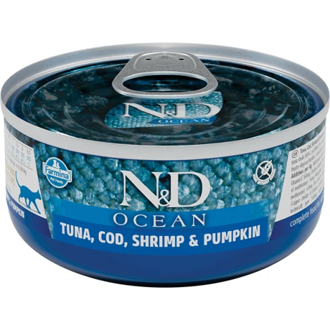 odstrániťLahodné krmivo N&D pre mačacích milovníkov tých najlepších mačiek. Tuniak, treska a krevety v kombinácii s tekvicou a rybím olejom sú výživnou pochúťkou, ktorá vždy poteší. Omega kyseliny v rybom oleji majú priaznivý vplyv na srsť.