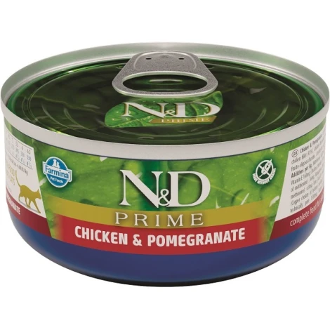 Lahodné kompletné krmivo N&D pre dospelé mačky. Jeho základom je 45 % kuracích filiet, kuracie stehná a granátové jablko. Skvelý a veľmi chutný recept, ktorý si obľúbia aj ľudia s citlivým trávením. Doprajte svojej mačke to najlepšie.