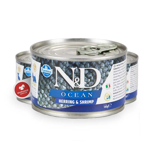 Delikatesná konzerva pre psíkov malých plemien, ktorí milujúkvalitné kúsky mäsa obohatené niečím netradičným. N&D obsahuje zmestresky a sleďa, v kombinácii s krevetami. Toto krmivo môžebyť určené naobmedzenie intolerancia určitých surovín.