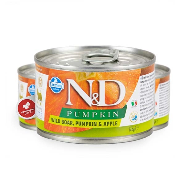 delikatesná konzerva pre dospelákov malých plemien, ktorí milujú kvalitné kúsky mäsa obohatené niečím netradičným. N&D obsahuje mäso divokých kancov v kombinácii s jablkami a tekvicou. Perfektne stráviteľná receptúra bez chémie a náhrad.