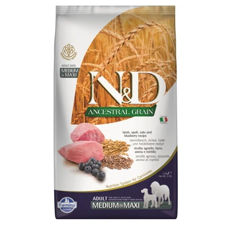 N&D Low Grain Dog Adult Lamb & Blueberry je kompletné krmivo pre dospelé psy stredných a veľkých plemien. Granule obsahujú minimum obilnín, základ tvorí hypoalergénne jahňacie mäso a silne antioxidačné čučoriedky. Ideálne aj pre psov s citlivým trávením.