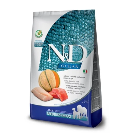 Bezobilná receptúra pre psy, ktoré milujú ryby. Zloženie je založené na lososovi, treske a kantalupskom melóne. Komplexné krmivo pre dospelé psy stredných a veľkých plemien.