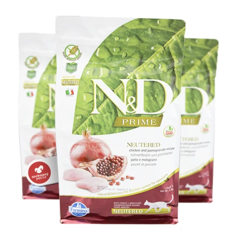 Lahodné a úplne prírodné krmivo pre kastrované mačky N&D Prime. Základom výživy je tu sušené i čerstvé kuracie mäso, zemiaky, ryby, vajíčka a granátové jabĺčko. Komplexné zloženie pre zdravý a spokojný život bez zvyšovania telesnej hmotnosti a močových problémov.