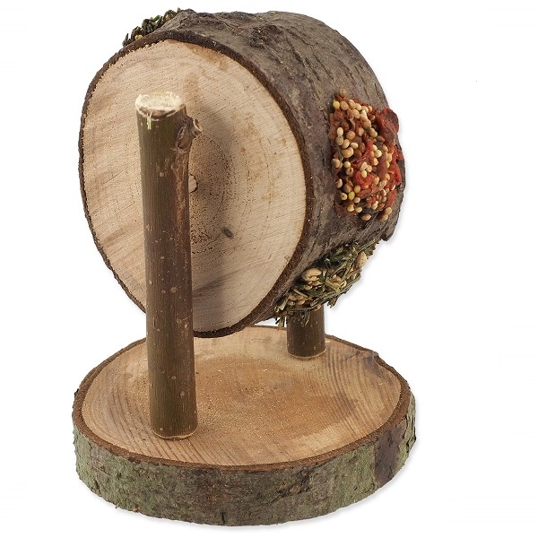 Drevené hracie koliesko plnené mrkvou, petržlenom a prosom Nature Land Nibble. Váš maznáčik sa pri vykusovaní náplne zabaví a zároveň okus dreva pomáha prirodzenej starostlivosti o zuby. Vhodné aj ako doplnok stravy pre vtáky.