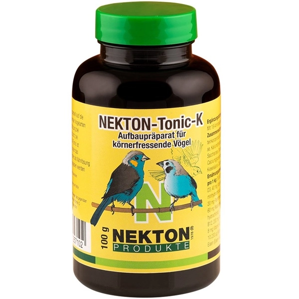 pre všetky vtáky, ktoré sa živia obilím. Nekton Tonic K obsahuje kompletnú zmes všetkých vitamínov, minerálov, stopových prvkov a aminokyselín, ktoré robia z Nektonu superpotravinu a nenahraditeľného pomocníka pre chovateľov vtákov.