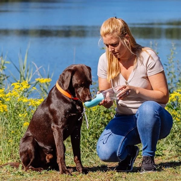 Doprajte svojmu domácemu miláčikovi pravidelný pitný režim s cestovnou fľašou Nobby pre psy a mačky. Dômyselný dizajn šetrí miesto v taške, uľahčuje kŕmenie a zabraňuje vzniku odpadu. Na osvieženie svojho domáceho miláčika nepotrebujete misku, stačí odomknúť fľašu, stlačiť tlačidlo a oáza je vaša. Nespotrebovanú vodu môžete stlačením tlačidla naliať späť do fľaše. Cestovná fľaša a miska Nobby v jednom je praktický pomocník na výlety, výstavy, dovolenky a iné dobrodružstvá s vaším chlpatým priateľom.
