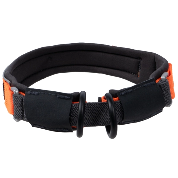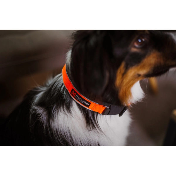 Obojok Non-stop Dogwear s bezpečnostnými prvkami je ideálny voľný obojok pre psov, ktorí radi behajú vonku, či už na záhrade, v prírode alebo pri hre s inými psami. Ochranný obojok má chytrý dizajn s bezpečnostnou gumou a reflexnými prvkami. Akonáhle pes zavadí obojkom o prekážku, ochranná guma s gumovým podkladom poskytuje dostatok priestoru na to, aby pes mohol vytiahnuť hlavu z obojku, alebo sa v prípade núdze pretrhne. Obojok sa dá používať aj cez hlavu, gumený obojok je odnímateľný. Vďaka mäkkej neoprénovej výstuži sa obojok pohodlne nosí a chráni srsť pred odretím.