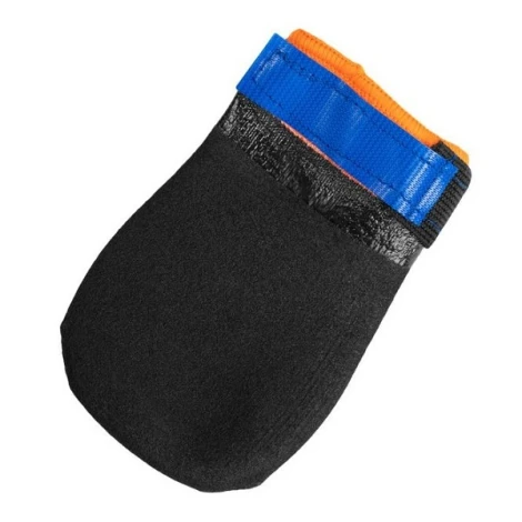 Pevné topánočky Non-stop Dogwear Protector Bootie na ochranu psích labiek. Vďaka skvelému anti-cut materiálu stupňa 5 skvele ochráni packy v každej situácii. Na spodnej časti sa nachádza nitrilová pogumovaná vrstva, vďaka ktorej topánočky nekĺžu ani na klzkom povrchu. Vyvinutá špeciálne pre mushing a dogtrekking, ale je vhodná aj pre bežné použiťie. V zime ochráni pred soľou, pri popraskaných tlapičkách ochráni pred zanesením špiny do rany a udrží tak prostredie čisté. Ochráni tiež pred ostrými črepy a rozpáleným asfaltom. Vnútri je materiál bezšvový, aby nedošlo k odieraniu labiek. Aj napriek tomu, že sa jedná o pevný materiál topánka je veľmi jemná, aby pes nestratil styk s povrchom a nenarušil sa tak prirodzený pohyb. Nastaviteľný a elastický suchý zips plní funkciu upevnenie, vďaka ktorému perfektne drží na labke.